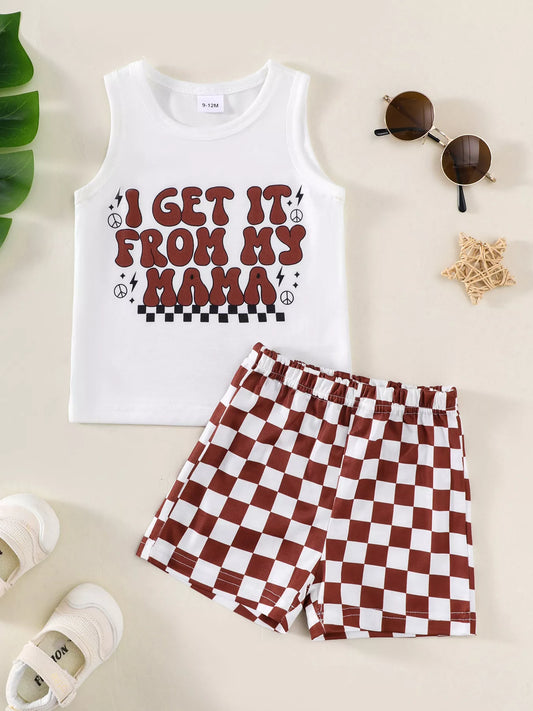 Children's Checkered Letter Tank Top & Shorts Set