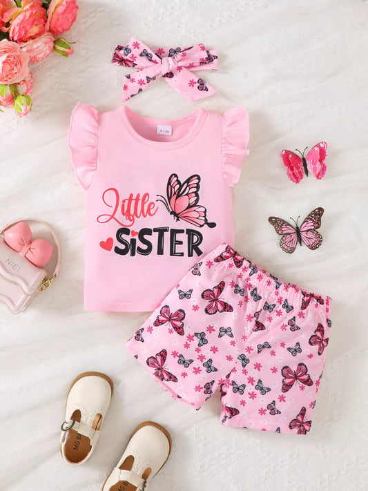 Children's Ruffled Butterfly T-Shirt and Shorts Set with Headband