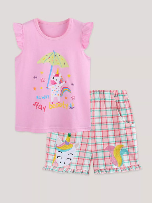 Children's Unicorn Dreams Sleeveless Top & Plaid Shorts Set
