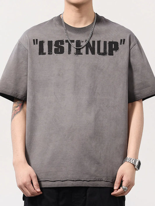 Men's Full Size Letter Round Neck Short Sleeve T-Shirt Plus Size